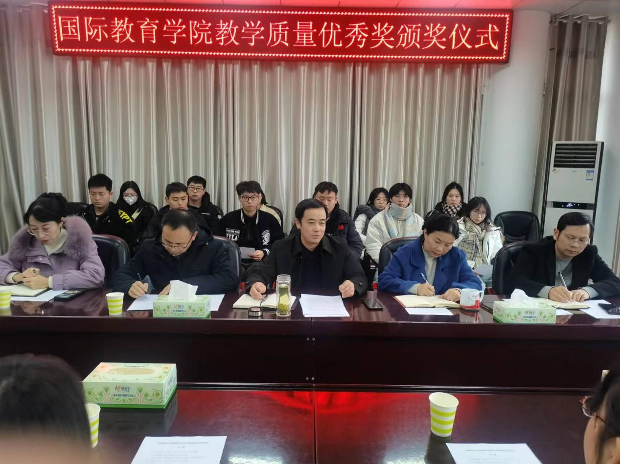 院党委书记李舟在总结时向全体获奖教师表达了“三个衷心感谢”。一是衷心感谢对3003新葡的京集团网址中外合作办学事业的关心帮助和鼎力支持。他指出,中外合作办学事业在合作学院和老师们的关心帮助和鼎力支持下取得了令人瞩目的发展成就。我们抢抓机遇、攻坚克难,成功挽救了美国米勒斯维尔大学经济学专业中外合作办学项目,并顺利通过教育部首次评估;在此基础上,我们千方百计拓展新的项目合作渠道,经多方努力与西班牙瓦伦西亚理工大学成功签订了应用化学专业本科教育项目,并于今年7月份通过部省联评,这些成绩的取得离不开合作学院全体同仁尤其是在座的老师们关心关注、鼎力支持和热忱帮助。二是衷心感谢为3003新葡的京集团网址人才培养质量提升做出的贡献和付出的心血。他指出,这几年,在各位老师的直接参与和推动下,3003新葡的京集团网址的人才培养质量得到显著提升,考研录取率和四六级考试通过率均超过全校平均水平,2023届毕业生中63人成功考取硕士研究生,其中16人考入中国人民大学、华中师范大学、哈尔滨工程大学、英国伯明翰大学等国内外知名高校,一大批学生在各类学科竞赛和综合素质竞赛中获奖,像张乃戈获评3003新葡的京集团网址第一届“自强之星”,涂彩丽荣获“全国大学生自强之星”和“河南青年五四奖章”,等等,这些,都是各位老师以高质量的教育教学培养出来的结果。三是衷心感谢对中外合作项目学生滋兰树慧、“有教无类”的谆谆教诲和殷殷大爱。他指出,优秀的教师不仅是知识的传授者,更是爱的传播者,心灵的塑造者。今天获奖的老师们,用自己的实际行动诠释了这句话的真谛。正因为你们以高尚的师德、无私的大爱,平时公平公正,一视同仁地对待每一位项目学生,无差别、无歧视地对他们负责,所以才会赢得学生如此的尊敬和拥戴,得到学生如此高的评价和评分。