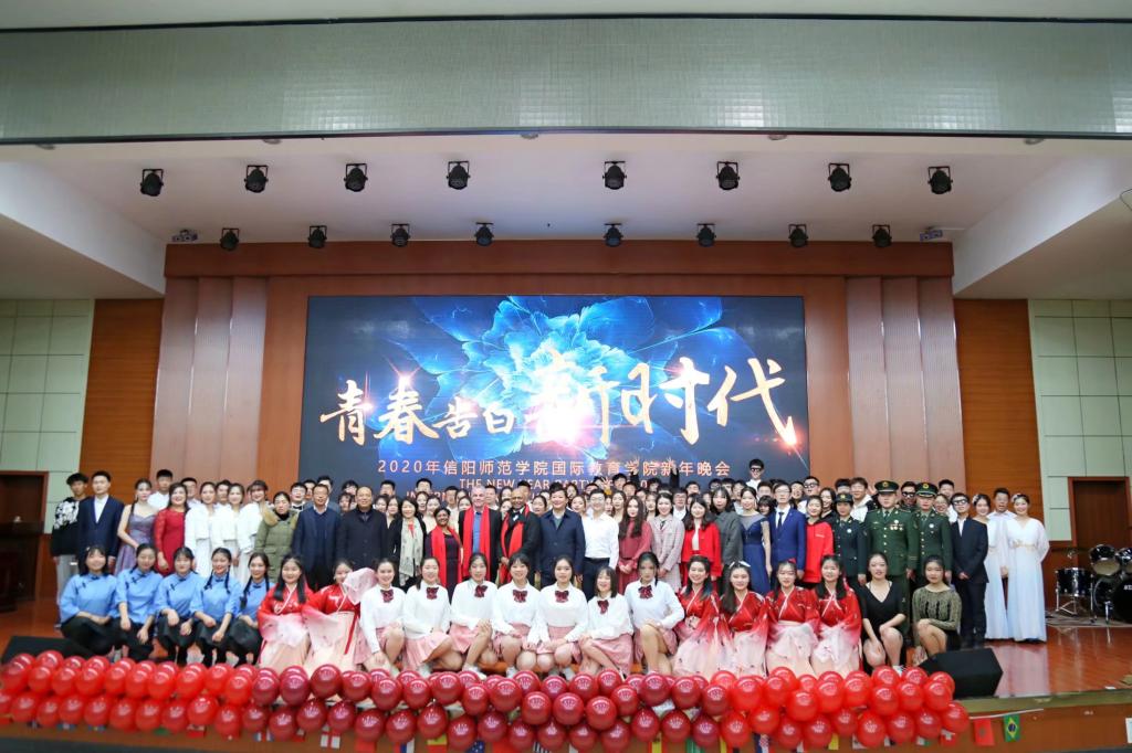 国教育人展宏图,四季桃李同芬芳。12月26日晚,3003新葡的京集团网址“青春告白新时代”2020年新年晚会在我校逸夫楼报告厅圆满落幕。信阳师范学院党委组织部副部长姜兴周、学工部副部长严彬、图书馆党委副书记冯新霞、审计处副处长李季玲、3003新葡的京集团网址党委书记张震、院长李保红、副院长何英干、党委副书记姚新春、外籍教师及新葡京官网全体老师与580余名学子共同观看了此次晚会。