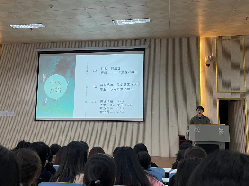 本次分享交流会给同学们带来了满满干货,不仅给即将考研的同学提供了宝贵的经验,并给立志考研的同学指引了方向,使同学们对考研过程有了一个更具体、更清晰的认识,为以后考研打下坚实的基础。