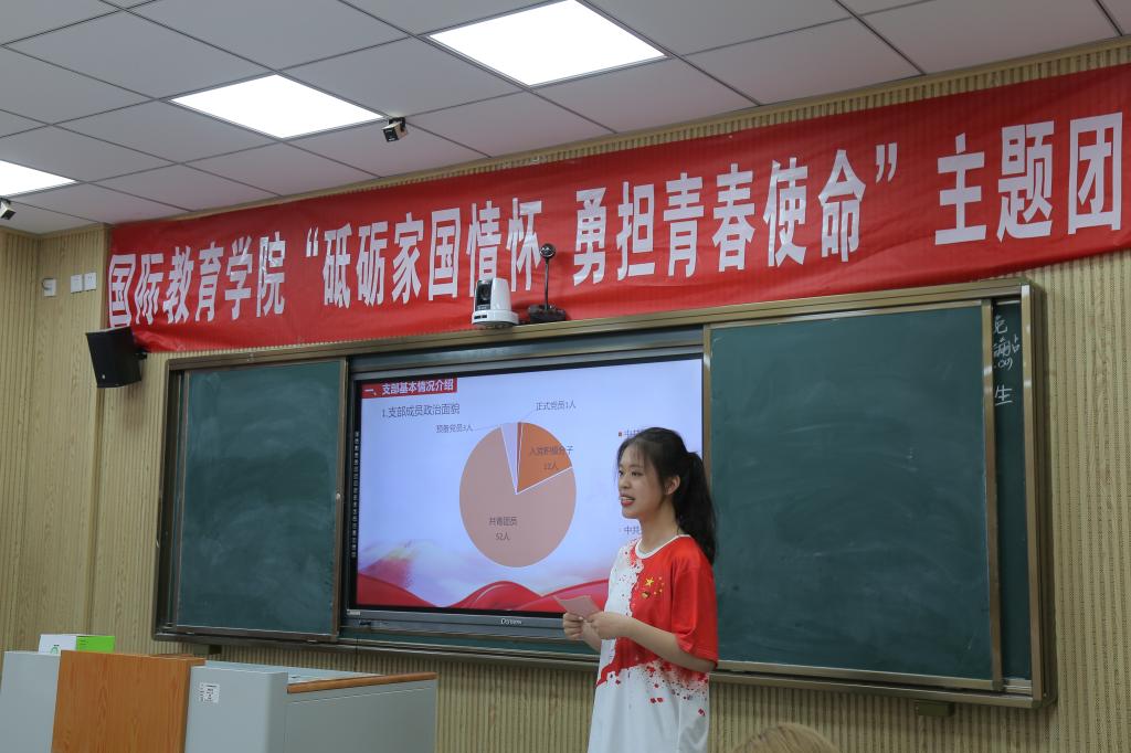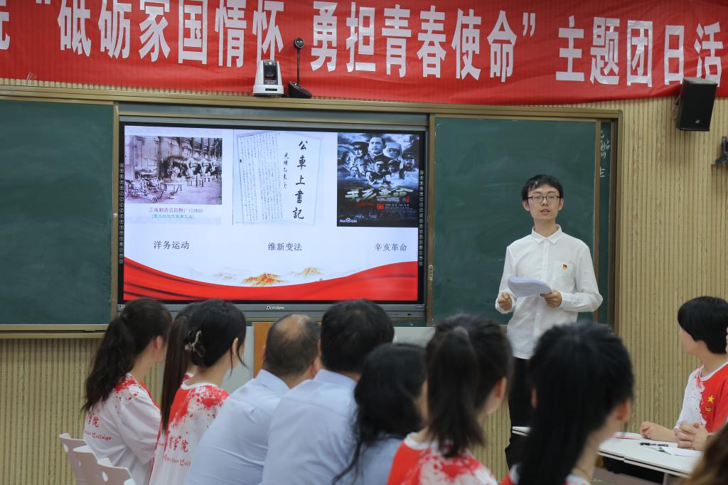 王建旭指出,团支部作为共青团各项工作的基本单位,是开展青年学子爱国主义教育的重要阵地。党旗所指就是团旗所向。广大青年团员正处在中华民族发展的最好时期,既面临着难得的建功立业的人生际遇,也面临着“天将降大任于斯人”的时代使命,他希望广大青年在党史学习中,一是要把稳人生航向。要坚定爱国的自觉、扛起报国的责任、奋发为国的情怀、激发强国的力量。要始终坚持党的领导,听党话、跟党走,只有坚持爱国和爱党、爱社会主义相统一,爱国主义才是鲜活的、真实的;二是要练就过硬本领。要在学习中增长知识、锤炼品格,在工作中增长才干、练就本领,以真才实学服务人民,以创新创造贡献国家;三是要开拓国际视野。要融合先进理念,不断增强知识更新的紧迫感,如饥似渴学习,切实提高与时代发展和事业要求相适应的素质和能力。同时,要自觉抵制不良思潮,对党和国家忠诚,做社会主义事业的合格建设者和可靠接班人。