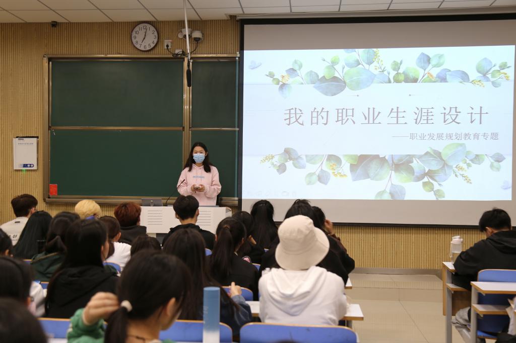 王昕昕则是从职业发展规划的角度出发,以自身为例,讲述了她从入学之初的迷茫,而后在一次次的大胆尝试和积极参加各项社会实践活动中,逐渐明确了自己的优势,找到了兴趣所在,并以此鼓励同学们趁年轻,要拥有敢于试错的勇气和精神,去找到适合自己的道路,追逐属于自己的未来。之后,她又分享了自己对于学习的认识,以及如何平衡好学习、工作和生活三者之间的关系,为同学们指点迷津,使同学们明确了努力的方向与目标。