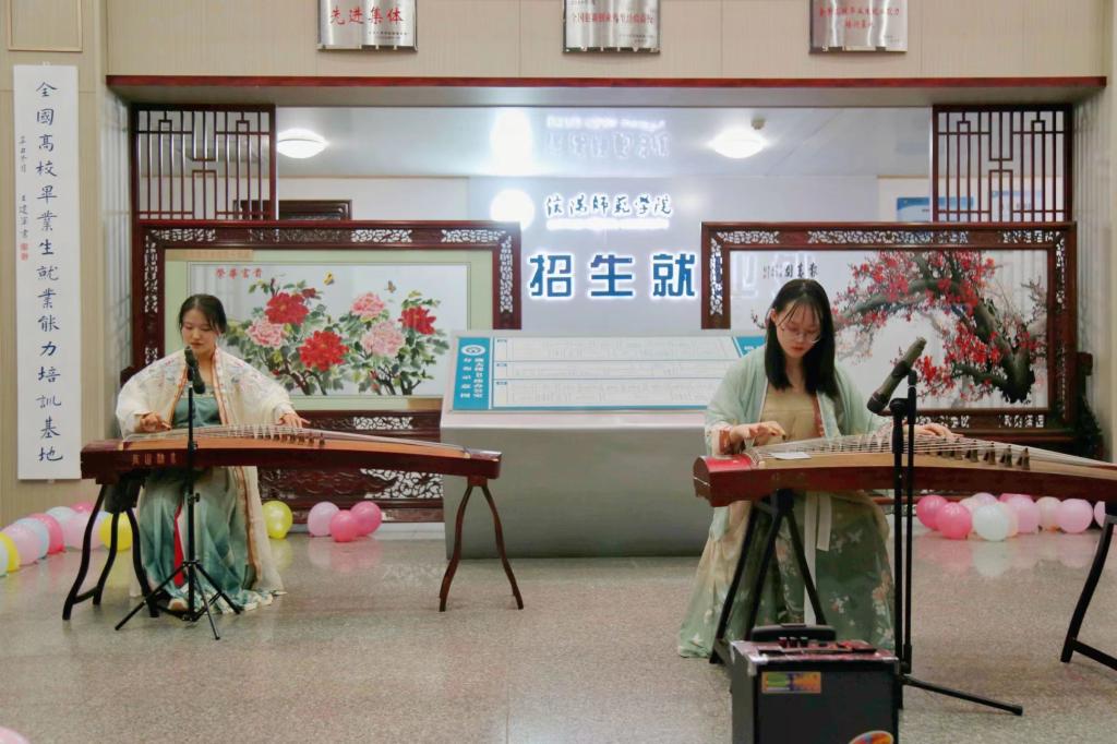 每年11月份是新葡京官网特色的女生月活动。为展现同学们的青春风采,丰富学校的校园生活。新葡京官网于逸夫楼B座大厅举行“歌以潆声 曲以徊乐”第三期国风民乐女生月活动。