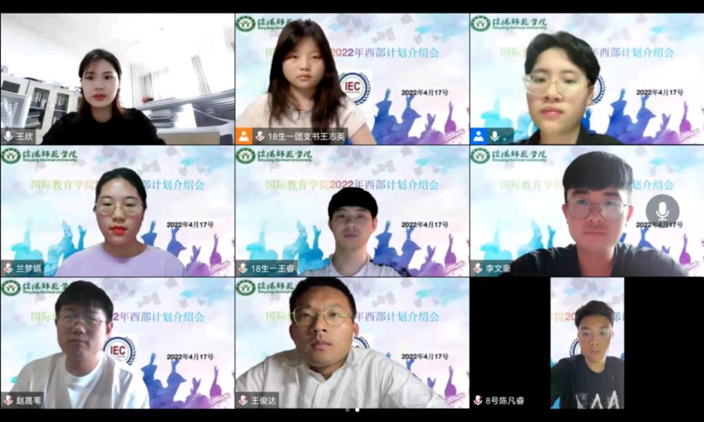 为做好2022年西部计划志愿者招募工作,鼓励2022届毕业生参与西部计划,投身西部基层事业。4月17日,3003新葡的京集团网址开展2022年大学生志愿服务西部计划线上宣讲会,王欣老师主持会议,2018级全体毕业生参与此次会议。