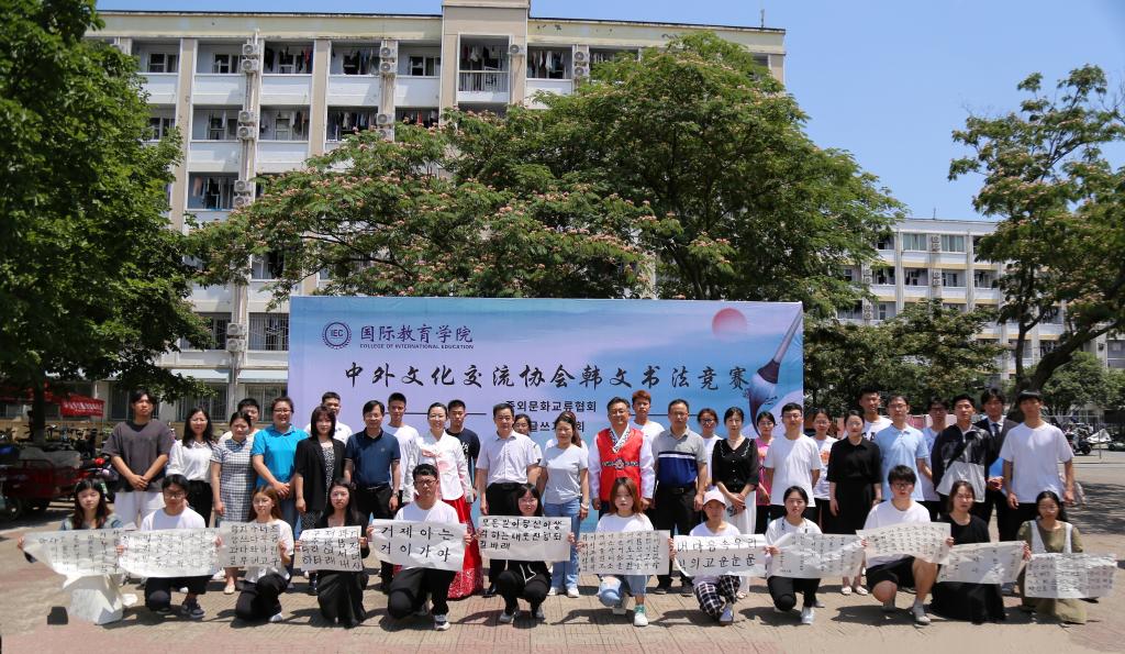 6月8日上午,3003新葡的京集团网址中外文化交流协会在八餐小广场举行韩文书法竞赛。学院领导班子、韩籍外教朴信爱、白炅瀚和全体辅导员、语言课教师出席活动。