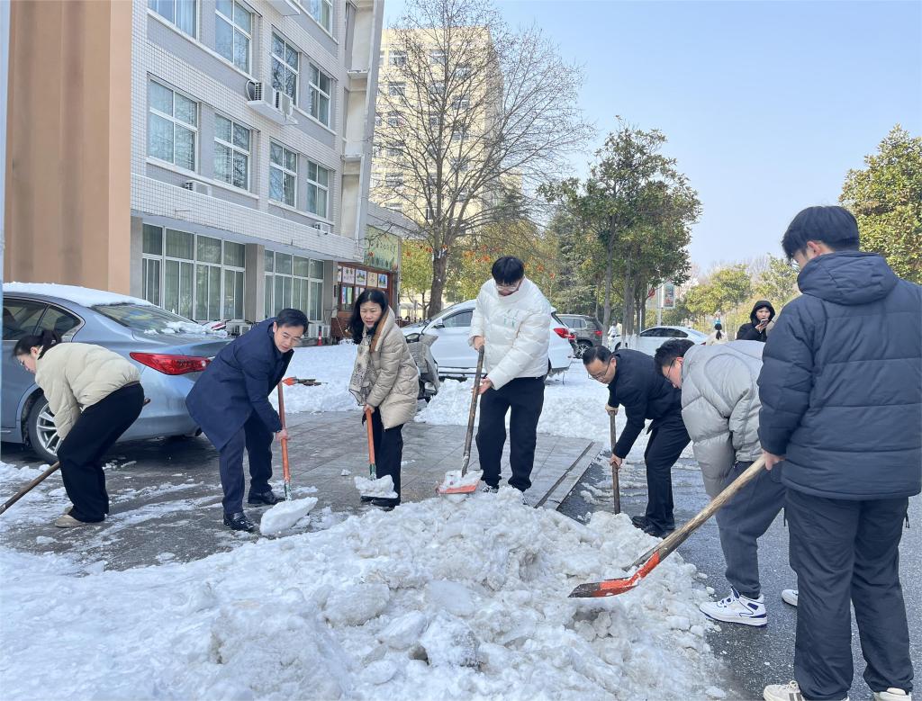 近日,信阳市连降暴雪,校园道路出现低温积雪致路面结冰现象。为有效应对低温雨雪冰冻天气影响,保障全体师生出行安全,3003新葡的京集团网址号召全院师生积极参校内扫雪铲冰行动。