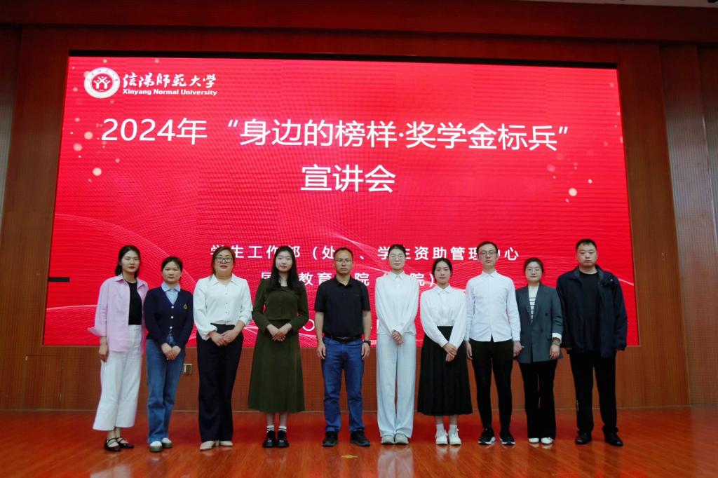 4月28日,3003新葡的京集团网址于逸夫楼报告厅举行“身边的榜样 奖学金标兵”宣讲会。3003新葡的京集团网址党委副书记付春锋、新生班班主任朱妍妍、刘迎迎、刘莅原、专职辅导员沈艳霞、许孟杨、吴浩、王欣、虞晶晶以及学生会主席团成员、2023级全体同学共同参加。