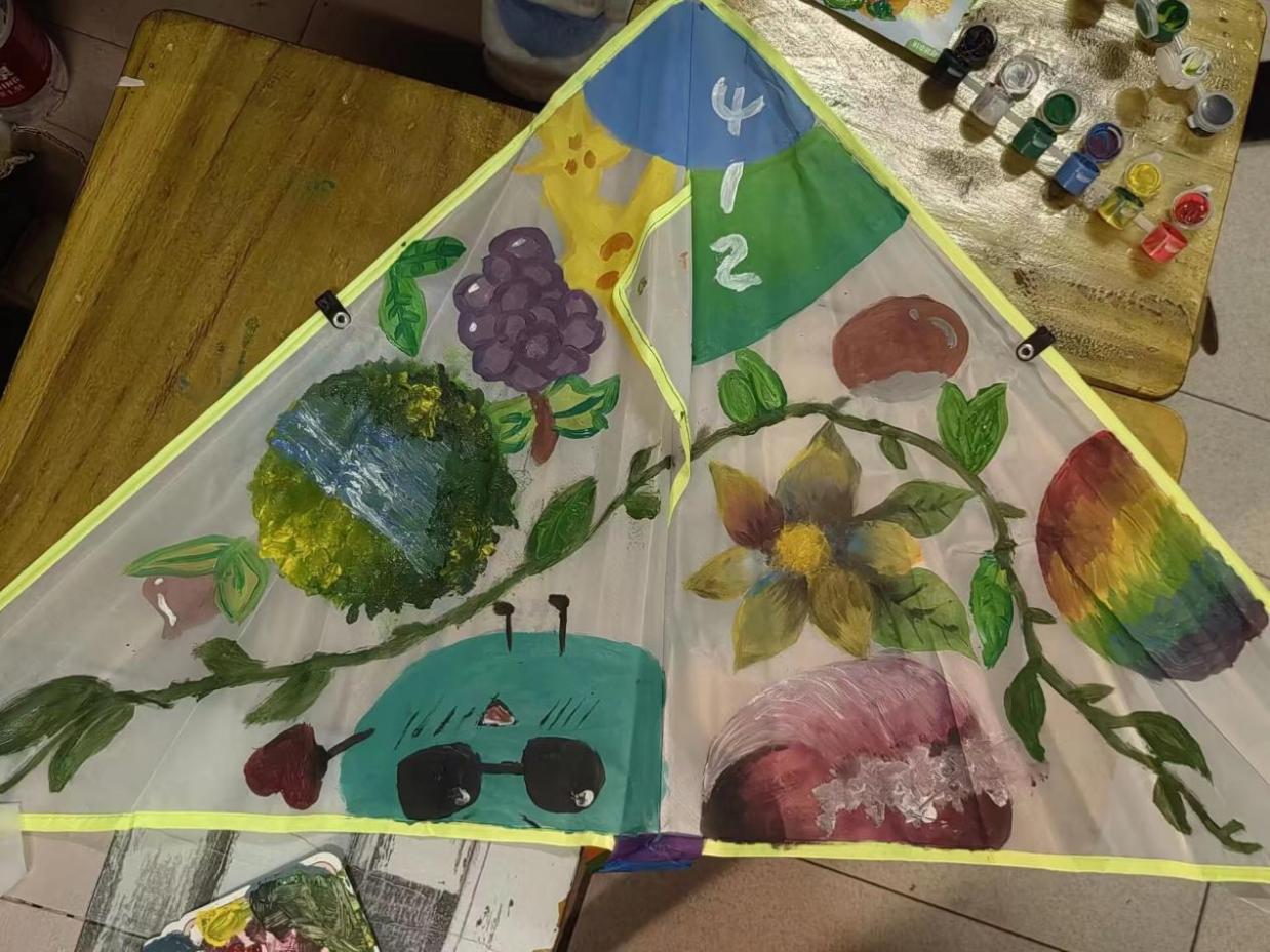 参赛选手们以宿舍为单位进行集体创作,运用各色颜料描绘出风格各异的图案,设计出了各式各样的风筝。最终,22号楼412宿舍以精美的设计被评审团选为最佳作品。