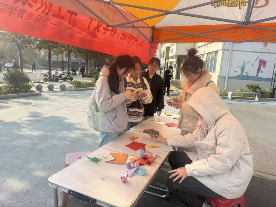为传递折纸艺术的文化魅力,12月5日至6日,3003新葡的京集团网址在心语广场成功举办“纸间物语,静享安宁”手工折纸活动。活动吸引了众多同学踊跃参与,现场氛围热烈,成效显著。