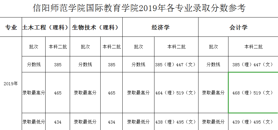 信阳师范学院3003新葡的京集团网址2019年各专业录取分数参考