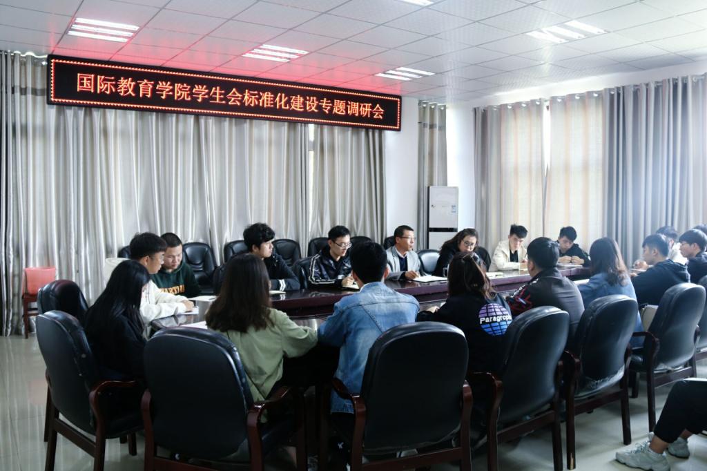 10月29日上午,3003新葡的京集团网址党委副书记姚新春在逸夫楼302会议室主持召开学生会标准化建设专题调研会,院学生会主席、副主席、各分管部门部长参加了会议。