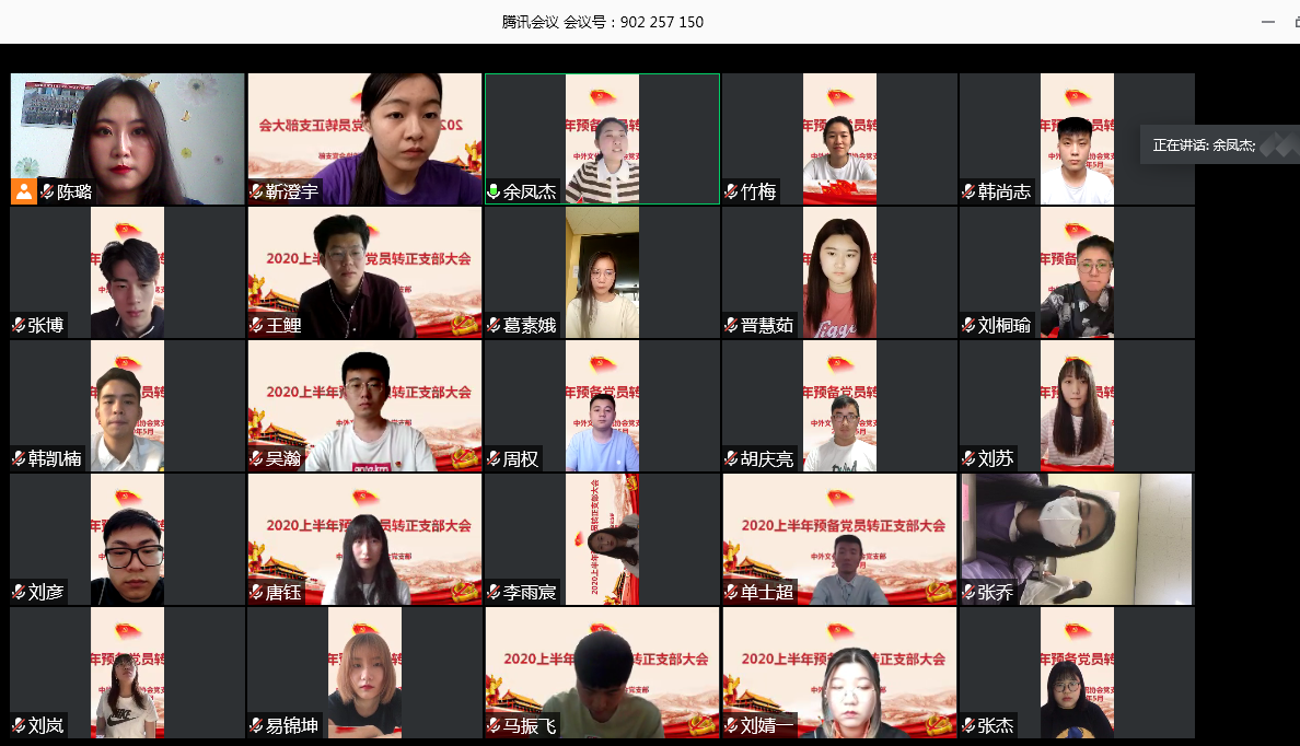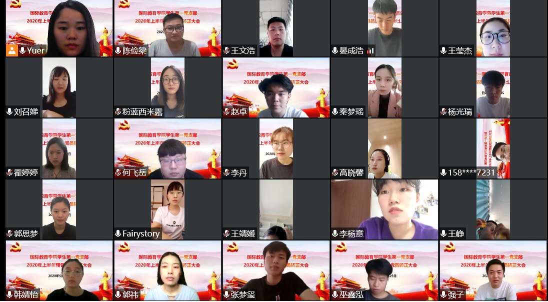 5月25日,3003新葡的京集团网址学生第一党支部、学生第二党支部、中外文化交流协会党支部召开了2020年上半年预备党员转正大会。各支部通过网络视频会议的形式召开会议。会议由各支部书记主持。