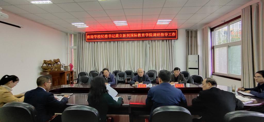 为进一步推进“不忘初心、牢记使命”主题教育往深里走、往实里走,11月12日下午,校纪委书记龚立新到3003新葡的京集团网址开展专题调研。校正处级纪检员周子良、童建园陪同调研。3003新葡的京集团网址班子成员、教工代表参加座谈会。