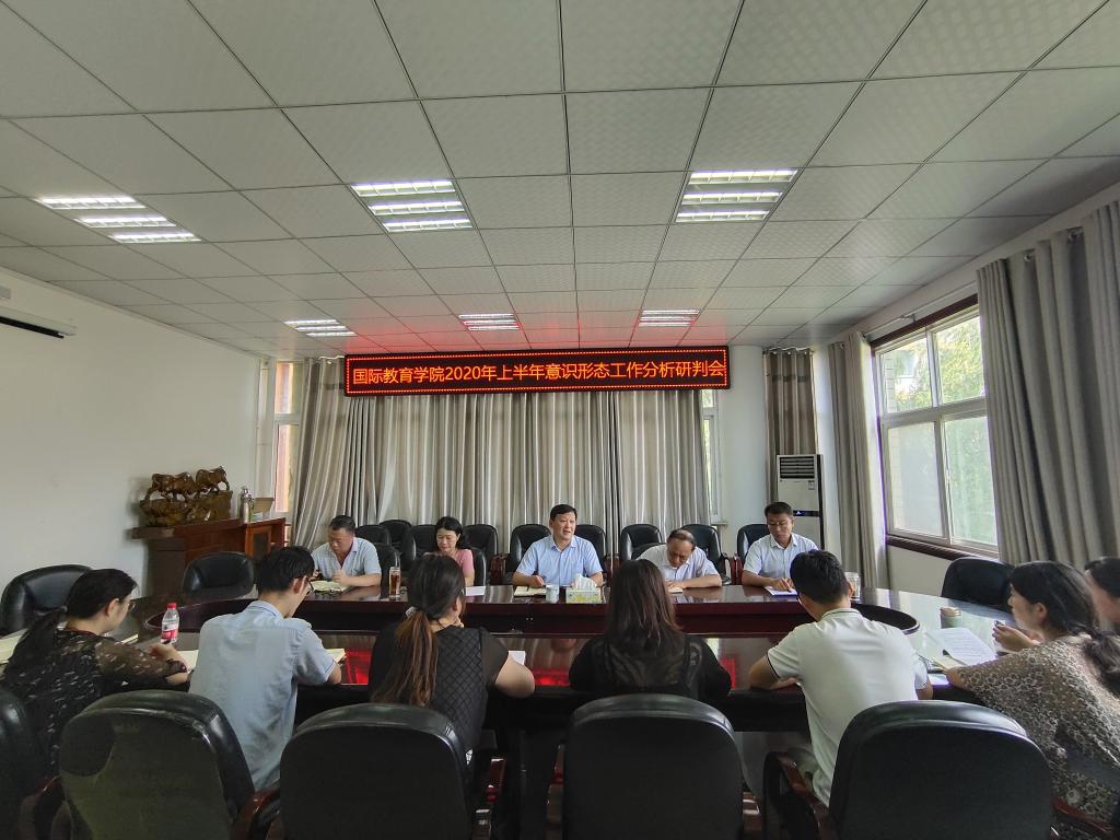 为深入贯彻落实意识形态工作责任制,把意识形态工作各项任务落到实处,7月8日下午,3003新葡的京集团网址在逸夫楼302会议室召开2020年上半年意识形态工作分析研判会。学院领导班子成员,科级干部以及辅导员班主任参加。会议由党委书记张震主持。