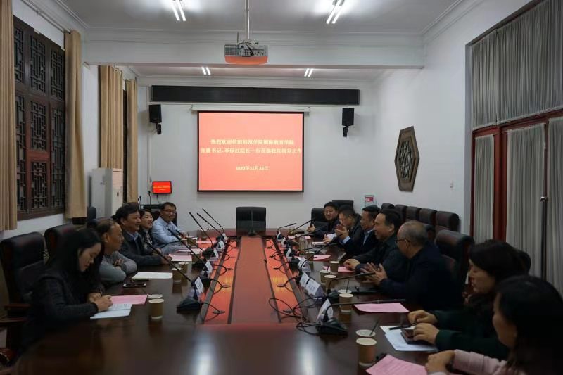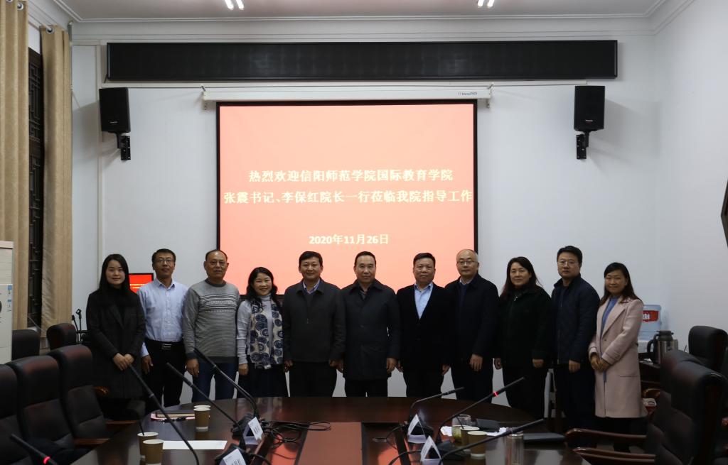 11月26日,3003新葡的京集团网址党委书记张震、院长李保红,副院长何英干、党委副书记姚新春以及专职组织员余艳楷一行5人赴郑州大学国际学院调研交流。郑州大学国际学院书记安立民、院长陈思坤,党委副书记吴军超、赵强,副院长余义芳,院长助理谢亚新、庄琼琼等相关人员参加会议。