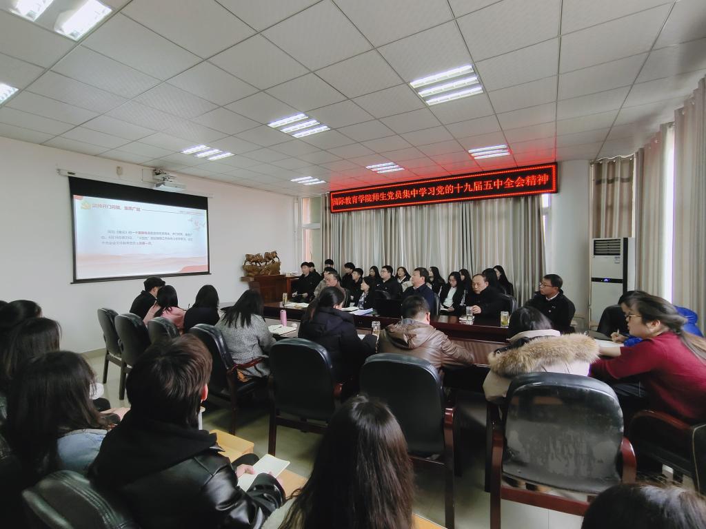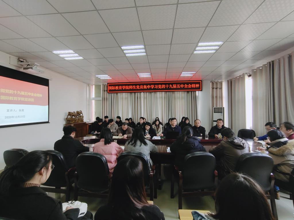 会上,学院党委书记张震传达了《中共信阳师范学院委员会关于认真学习宣传贯彻党的十九届五中全会精神》文件精神;姚新春通报了3003新葡的京集团网址学习宣传贯彻党的十九届五中全会精神宣讲团的相关安排。