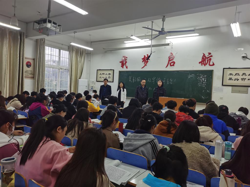 为进一步做好学风建设工作,3003新葡的京集团网址在新生中开展以“胸怀鸿鹄志,晨起诵读书”为主题的早读活动,10月18日早上6:40院长李保红、党委副书记付春锋、副院长姚光金、语言课任课老师及新生辅导员参加了第一天早读活动。