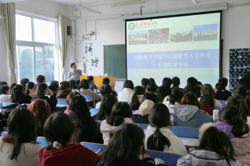 11月10日,新葡京官网邀请学业导师徐永杰博士为2021级生物技术专业新生做专业认知教育讲座。教务员朱妍妍、辅导员王欣参加。