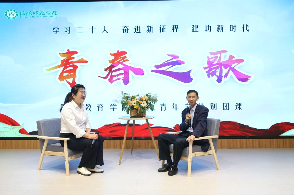 校团委副书记张鹏、青年博士代表俞彤辉、张雨雪、全国第十七届“大学生年度人物”、出彩河南人“第五届最美大学生”、河南省五四奖章获得者涂采莉分别围绕“青春·成长”、“逐梦·奋斗”、“创新·绽放”主题分享了个人的青春故事。6名优秀毕业生代表汇报了自己扎根基层、投身一线,在各领域建功立业的职业选择与职业规划。