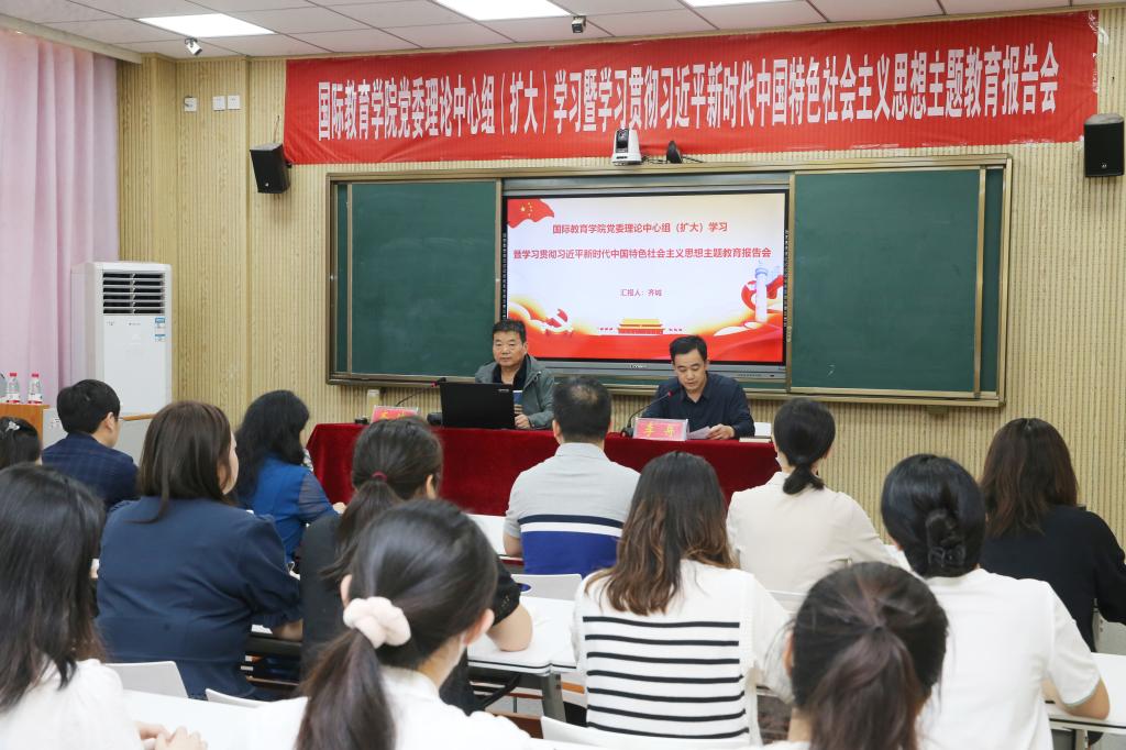 6月6日下午,3003新葡的京集团网址在逸夫楼201召开党委理论中心组(扩大)学习暨学习贯彻习近平新时代中国特色社会主义思想主题教育报告会,特邀信阳师范学院原副校长、中国管理科学研究院特聘研究员齐城作学习贯彻习近平新时代中国特色社会主义思想主题教育专题辅导报告。学院班子成员、全体科级干部、语言课教师、专职辅导员和学生党员参加会议。院党委书记李舟主持会议。