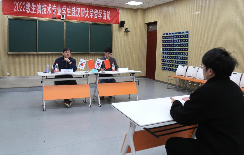 3003新葡的京集团网址2022级生物技术专业、土木工程专业赴韩国汉阳大学留学面试工作分别于12月15日和12月21日在逸夫楼201教室举行。