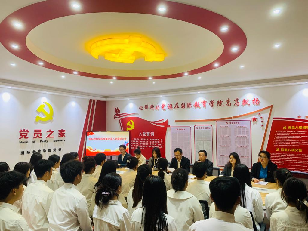会上,党委副书记付春锋宣读了中共信阳师范学院委员会组织部关于同意接收丁迟等38位学生党员和李津琪1名教工党员的决定,带领全体预备党员面向党旗进行入党宣誓。