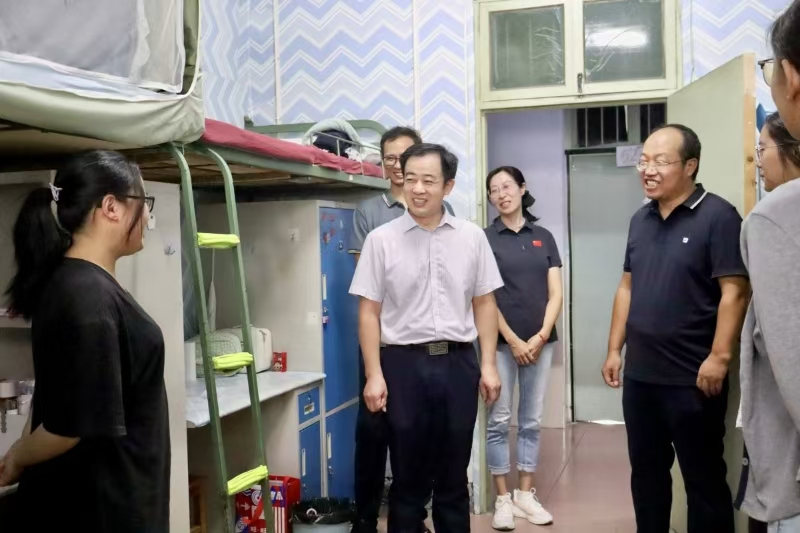 真情慰问,情暖现场。9月7日当天,校长李俊,校党委副书记龚立新,副校长王娟、朱晓东带领学生处、后勤管理中心等相关部门负责人莅临新葡京官网新生报到现场,看望慰问坚守在迎新岗位的领导老师们,详细了解学院迎新工作进展情况,对志愿者良好的精神状态给予充分肯定,嘱咐他们以更加饱满的热情,耐心、细致、周到地做好各类迎新服务。3003新葡的京集团网址党委书记李舟、院长刘林超带领班子成员在迎新现场为学院经济困难新生发放了“爱心大礼包”,深入新生宿舍,实地查看了新生住宿条件,同新生及家长面对面进行了亲切交谈,鼓励2024级新生尽快完成从高中到大学的角色转变,积极主动适应大学生活。