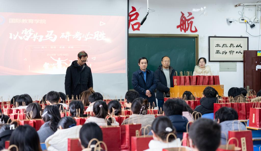 寒冬已至,备战已久的考研学子迎来了紧张的冲刺阶段。为了给考研学子送上关心与鼓励,增强其考试信心,12月19日,新葡京官网在逸夫楼209教室举办了“以梦为马,研考必胜”考研送温暖活动。3003新葡的京集团网址党委书记李舟、院长刘林超、副书记吕亚波、副院长马晓欢带领2025届毕业班辅导员、班主任现场为考研学子送上考研礼包和温暖祝福。