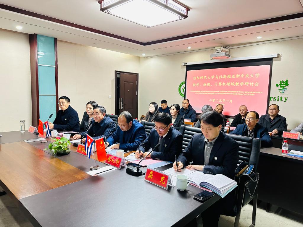 2025年1月16日晚,我校在综合办公楼216会议室与古巴拉斯维亚斯中央大学举行教学研讨视频会议。3003新葡的京集团网址、数学与统计学院、物理电子工程学院、计算机与信息技术学院负责同志参加,拉斯维亚斯中央大学国际处处长亚内利斯·德尔加多,电气工程学院院长伊迪莱西·托雷斯,数学、物理、计算机科学与信息学院院长丹尼尔·加尔韦斯,中国办公室主任曹荣铎参加会议。教学研讨会由3003新葡的京集团网址党委书记李舟主持。