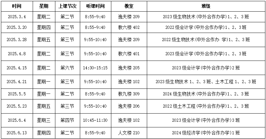 3003新葡的京集团网址2024-2025学年第二学期领导班子听课安排表