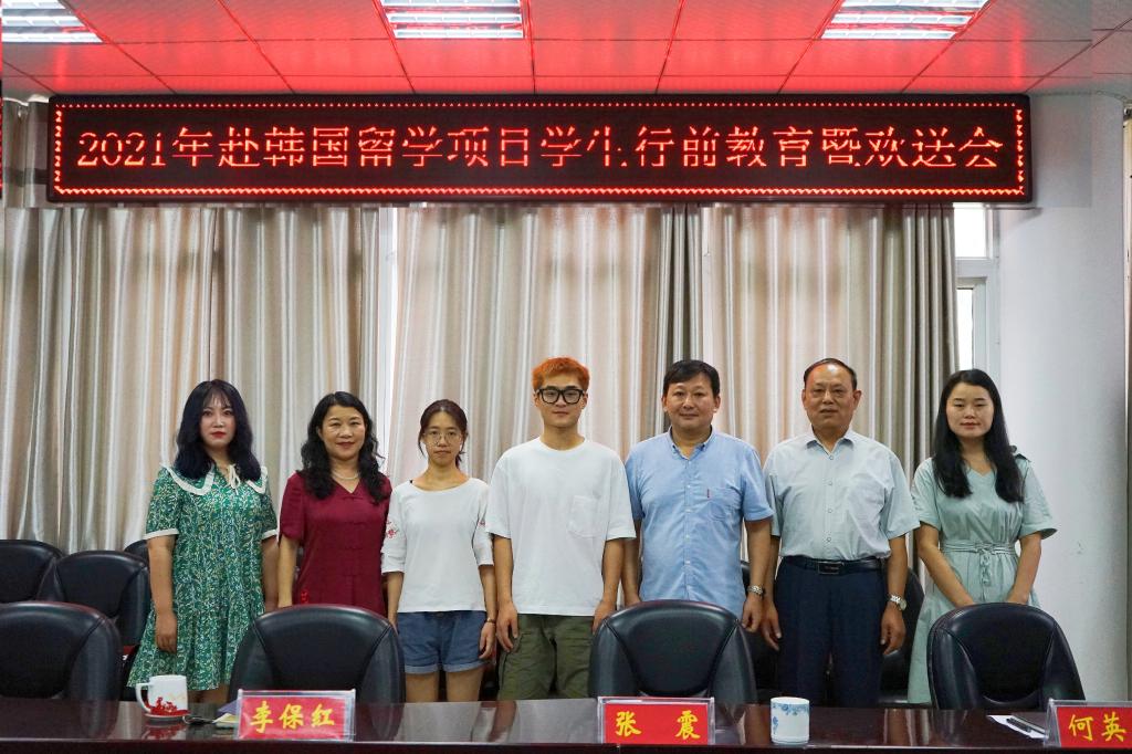 会上,张震解读了《信阳师范学院在校本科生到中外合作办学合作高校出国留学管理办法(试行)》,指导学生明确海外学生管理制度,时刻跟进党组织的脚步,发挥党员先锋模范性作用,不忘初心。李保红宣读2021年出国留学人员名单,向他们表示祝贺,希望他们在国外能够实现自己的理想与价值。何英干在进行行前教育时提出,学校正在大力推进国际化办学,积极为同学们搭建更为优质高效的出国留学平台,希望留学学子怀爱国之心,树报国之志,积极进取,规划好学习和生活,早日学有所成归来,实现自己的梦想。陈璐和余艳楷分别对出国留学学生作临行寄语,希望同学们能够在海外开拓视野,更好地实现自己的人生价值。赴韩国汉阳大学留学学生代表李金阳发言,表示自己作为一名预备党员,一定会珍惜宝贵的机会,发挥先锋模范作用,将自己学到的知识运用到实际中,报效祖国。(审核:何英干)