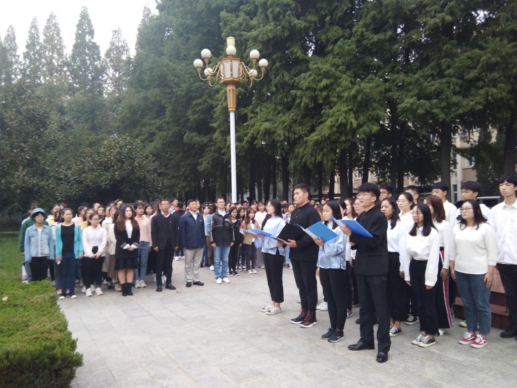 “同升国旗、共唱国歌、不忘初心、牢记使命”。10月14日,3003新葡的京集团网址在明德广场隆重举行升国旗仪式。新葡京官网党委书记张震、副书记姚新春、2019级460余名新生、新生班主任和专职辅导员参加升国旗仪式,同上爱国主义教育的开学第一课,向伟大祖国深情告白。