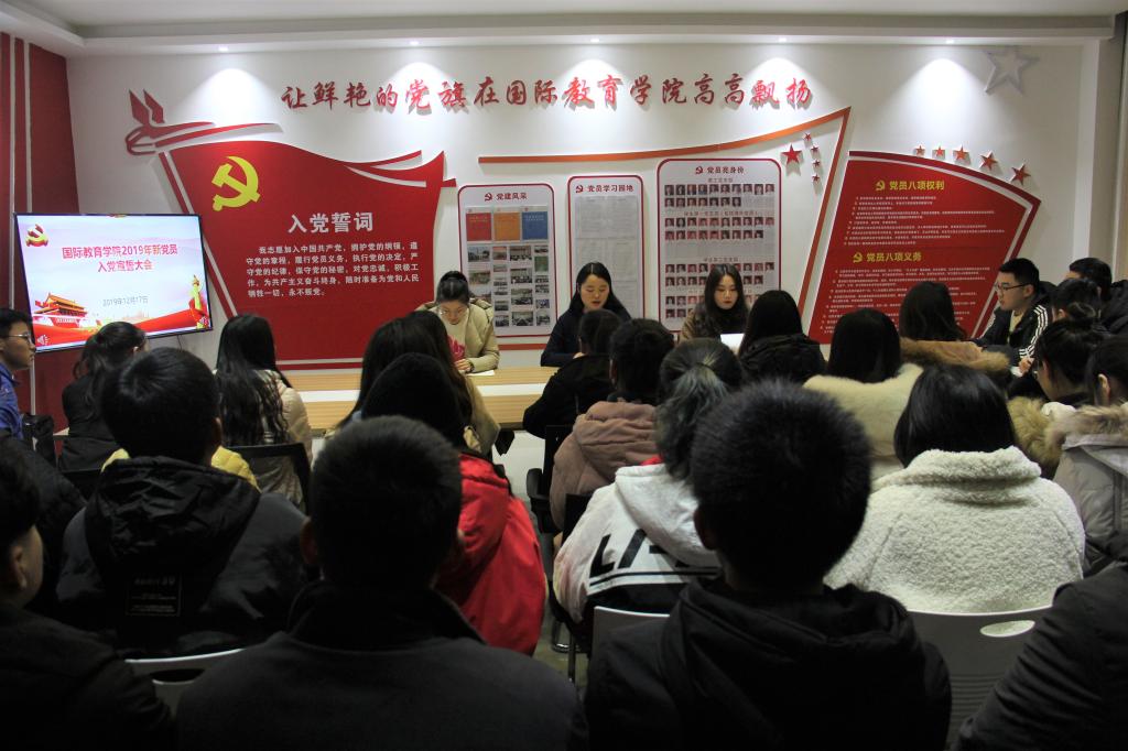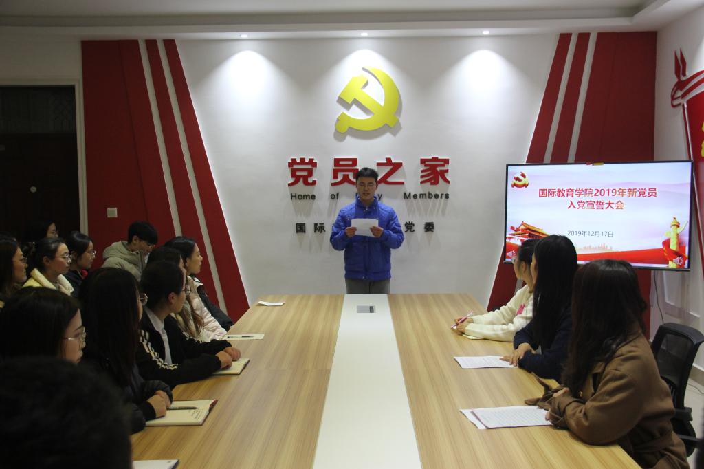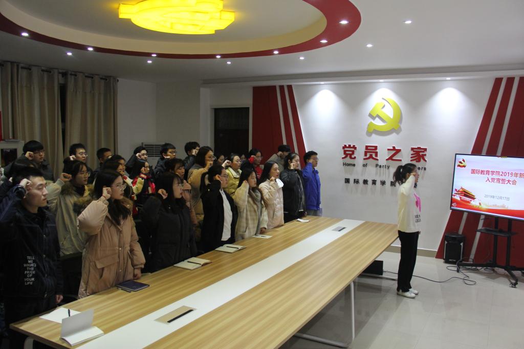 12月17日下午,3003新葡的京集团网址在逸夫楼202党员之家召开了2019年下半年新党员入党宣誓大会。学生第一党支部、学生第二党支部、中外文化交流协会党支部支部书记以及新发展入党的45名党员参加。会议由余艳楷主持。