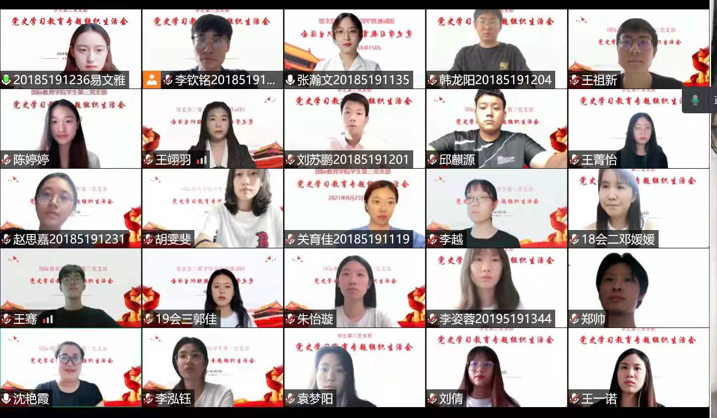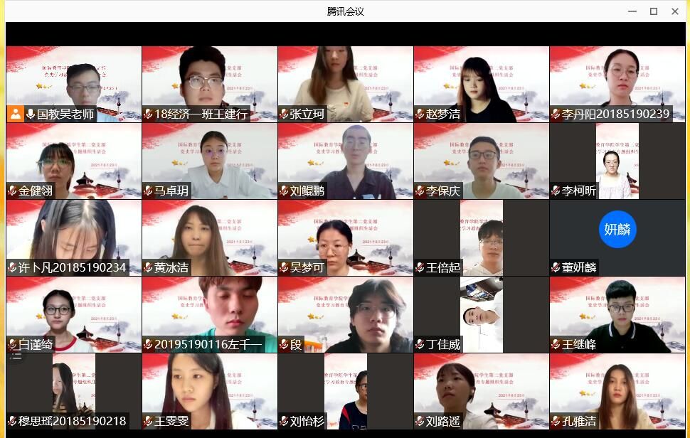 根据校党委、学院党委关于召开党史学习教育专题组织生活会的要求,8月23日,3003新葡的京集团网址各学生党支部党史学习教育专题组织生活会采取腾讯网络视频会议形式开展。