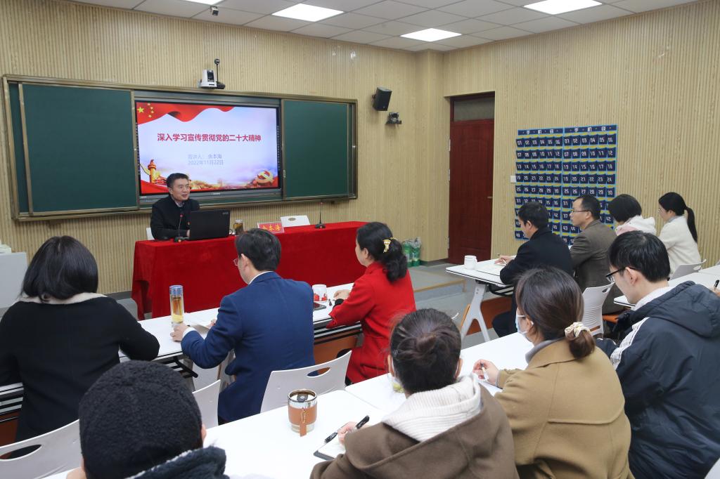 11月22日下午,副校长余本海在逸夫楼201为3003新葡的京集团网址师生宣讲党的二十大精神。新葡京官网党委理论学习中心组成员和师生党员代表聆听了宣讲。宣讲会由院党委书记李舟主持。