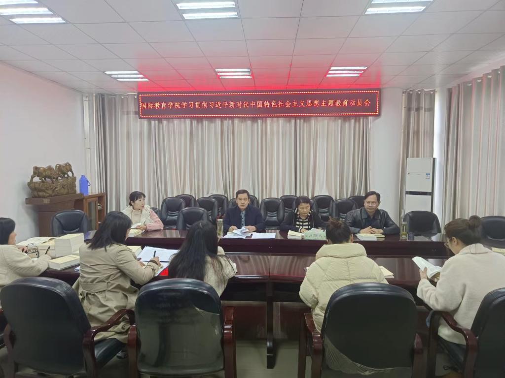 李舟强调,深入开展学习贯彻习近平新时代中国特色社会主义思想主题教育,是党中央为全面贯彻党的二十大精神、动员全党同志为完成党的中心任务而团结奋斗作出的重大部署,是当前的一项重大政治任务,全体党员干部必须高度重视,突出重点、抓住关键、统筹兼顾、整体推进。要把理论学习、调查研究、推动发展、检视整改、建章立制贯通起来,把开展主题教育同打通工作堵点、破解难题瓶颈、补齐短板弱项、检视整改问题、推动事业发展等具体任务结合起来,全面准确把握“凝心铸魂筑牢根本、锤炼品格强化忠诚、实干担当促进发展、践行宗旨为民造福、廉洁奉公树立新风”的目标任务,不折不扣落实“学思想、强党性、重实践、建新功”的总要求,努力把各项工作做扎实、做到位,切实把习近平新时代中国特色社会主义思想深化转变为推进中外合作办学党建和事业两个高质量发展的强大力量,以时时放心不下的责任感、积极担当作为的精气神,扎实有力开展主题教育。一要把好“学习”关,精研细琢,细学深悟内化于心。要系统掌握习近平新时代中国特色社会主义思想的科学体系、精髓要义和实践要求,坚持多思多想、学深悟透,做到整体把握、融会贯通,实现知行合一、学以致用,在深学细照笃行中提高理论素养、坚定理想信念、升华觉悟境界、增强能力本领。二要把好“调研”关,克难攻坚,实干担当外化于行。要坚持结果导向,突出问题意识,把调查研究的着眼点置于中外合作办事业发展深层次、关键性问题上,要到困难较多、情况复杂、群众意见集中、工作打不开局面的地方去,体察实情、解剖麻雀,全面了解掌握情况,把党的创新理论有效转化为找准对策,解决问题、促进工作的有力举措,打通难点堵点,推进事业发展。三要把好“成效”关,实事求是,检视整改固化于效。要以主题教育为契机,深入查摆理论学习、政治素质、能力本领、担当作为、工作作风、廉洁自律等方面存在的突出问题,以问题倒逼改革,推进发展,切实解决民生事实、办好发展要事,把“问题清单”变成“履职清单”“成效清单”,确保主题教育取得实效。