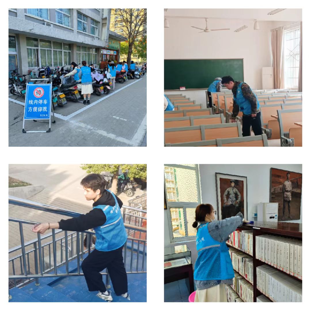 随后,三支队伍分赴校内指定区域开展志愿活动。“最近怎么样,生活上还有什么困难?”院党委副书记付春锋带领“献爱心 送温暖”志愿服务队看望2022级生物技术专业学生李春涛,关心床铺改造后的生活学习情况,在了解到代步工具存在充电难的问题后,现场办公,亲自协调解决现实诉求。服务队还前往离退休职工家属院向老教师们送去了关怀和温暖。“人的生命是有限的,为人民服务是无限的,要把有限的生命,投入到无限的为人民服务中去”由党员组成的雷锋精神宣讲团深入教室、宿舍等学生生活区动情讲述发生在身边的雷锋故事,向青年学生传递雷锋精神。“线内停车,方便你我”文明创建志愿服务队前往公共停车场、教室、图书馆等开展了“对逆行说不”“校园清洁行”等活动,以身示范引领团员青年从我做起,共创文明和谐美丽的校园环境。
